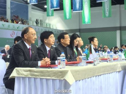 来自土库曼斯坦阿什哈巴德消息,在第34届亚奥理事会代表大会上,亚奥理事会主席艾哈迈德亲王郑重宣布:“中国杭州获得2022年亚运会主办权”。杭州成为继北京、广州之后,第三个举办亚运会的中国城市。(央视记者高珧)