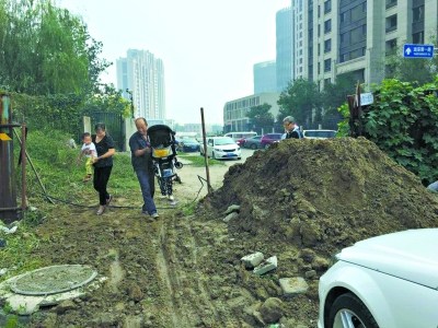 本报讯 昨晚,朝阳区望京某中央公园小区业主反映,在一个居民出行的必经路口,连续两天,被不明人员“封路”。“先用一块大石头堵,后来又用渣土堵,不知道住户招惹谁了。”“进出太不方便了,而且有种被威胁的感觉。”有居民说。对此,小区物业称,此事与业主无关,很可能是小区开发商与其他单位存在经济纠纷,结果招致对方强行堵路。记者今天上午在现场看到,这个路口还被渣土堵着,只有行人能勉强通过。