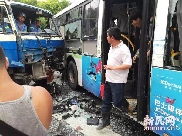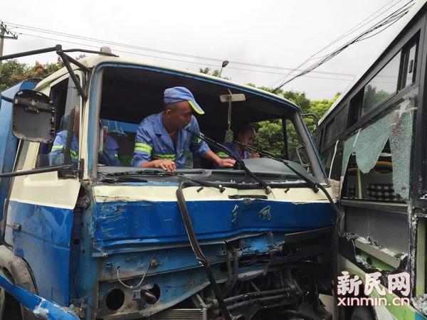 网曝上海闵行一环卫车和公交相撞 2人轻伤(图)