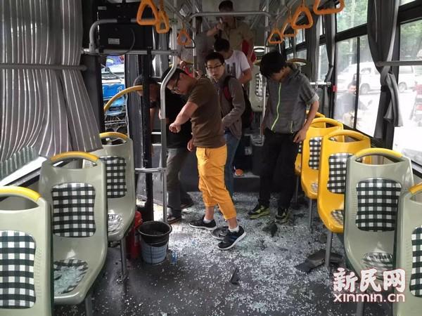 公交车上玻璃碎了一地 网友江先生供图