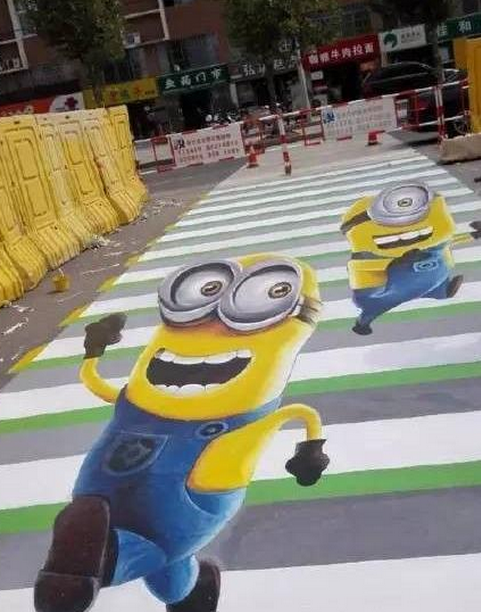 “小黄人”被搬上斑马线 江苏宿迁绘制3D斑马线