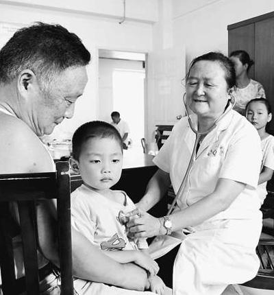 图为该院儿科主任计承英(左三)为患儿诊断。