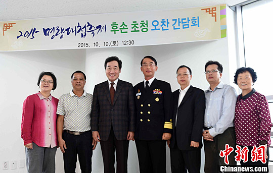 庆典结束后,全罗南道知事李洛渊、韩国海军第三舰队司令官朴东禹等官员,接见并设午宴款待了中韩两国陈璘后裔代表及陈璘故乡的广东省云浮市云安区政协副主席温谨圣一行。
