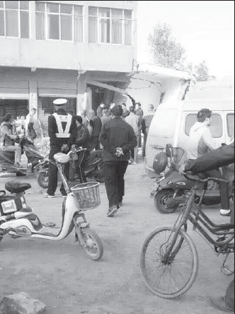 事故发生后,人们看到倒塌的房屋,感到心惊。