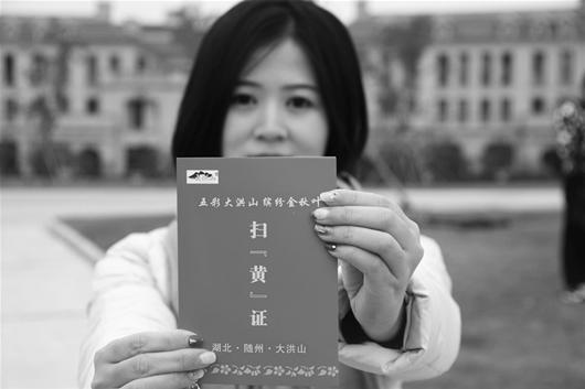 楚天金报讯 图为:工作人员向记者展示扫“黄”证