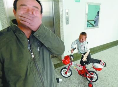 昨天,在市三医院,在汉打工的大悟县农民刘涛看到儿子戴上3D打印手,终于露出久违的笑容。记者金思柳 摄