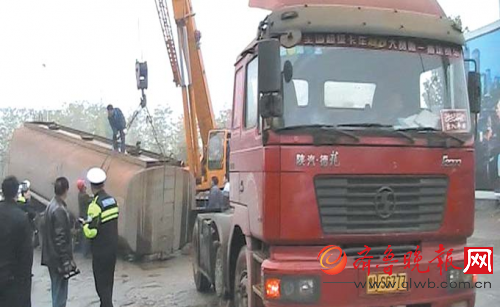 “这是驾驶员喊来的,准备用吊车将罐体和罐车头连接起来。”办案民警说,他们找到罐车驾驶员询问罐体内液体成分。驾驶员说,罐车的确是从附近一个化工厂开出来的,但罐体里的液体并非危化品,而只是30多吨废水。“从厂里出来准备把这些废水运到黄河北去,没想到在转弯时发生意外,罐体与车头连接处脱落导致废水泄漏。”罐车驾驶员说,他没想到市民会对液体成分猜测造成恐慌,也没有报警,就自己找来车排除故障。