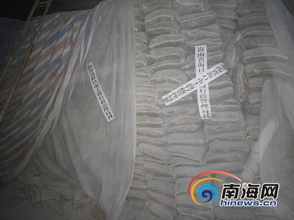 11月8日晚,海口工商部门就地封存数百吨问题水泥。南海网记者姜飞摄