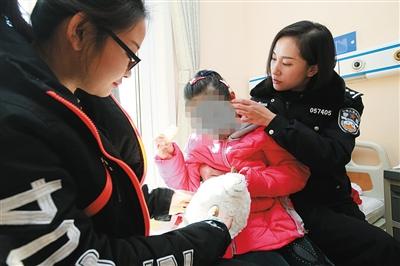 女孩在救助机构,民警看望并陪其玩耍。大兴警方供图