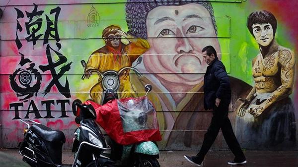 上海最浪漫道路涂鸦墙刚亮相就被无名画覆盖
