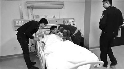 昨日下午,27岁的民警陈佳伍虚弱地躺在病床上,在经过一夜的抢救后他终于睁开双眼,伸手示意自己要喝水。前晚,花园路派出所民警联合城管,针对辖区无照游商非法占道扰民开展整治工作时遭遇暴力抗法,一名小贩在民警的脖子上扎了四刀,犯罪嫌疑人胡某被当场抓获。经过医院全力抢救,民警现已脱离生命危险。据悉,行凶的小贩此前有多次前科,之前还曾因寻衅滋事被警方刑事拘留。
