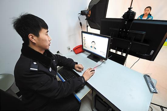 户籍民警在某派出所内为一名市民采集身份证照片信息 据新华社
