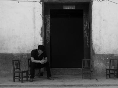 王涛坐在家门口,一筹莫展。京华时报记者怀若谷摄