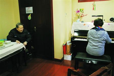 图说:来颐养院一年半了,谭绍芬闲时喜欢弹钢琴,王凌青就在旁边听着。 来源:解放日报