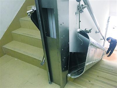 安装电梯的居民楼位于八八中心·金廷小区,楼高26层,每层有两个单元。前日下午,记者在大楼底层消防通道内看到,滑梯全部收起,侧挂在消防梯扶手上,衔接处有不锈钢材质的金属扣,滑梯本身为铝合金材质。由于滑梯弧度不大,宽度在50厘米左右,因此收起后并未占据逃生通道过多空间。
