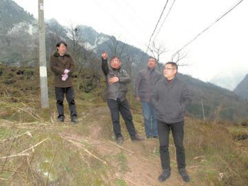 王川(右一)在峨边县哈曲乡解放村勘察道路。