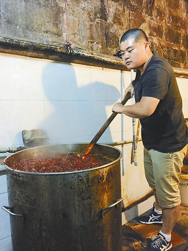 党海峰在重庆学习炒火锅底料。 (图片由受访者提供)