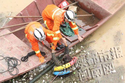 大妈被救上岸