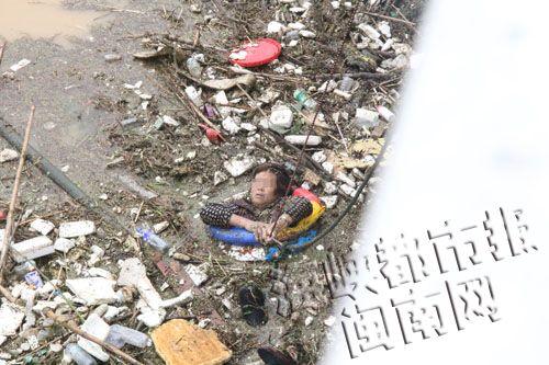 大妈骑车摔入水库获救 1小时漂了1公里(图)