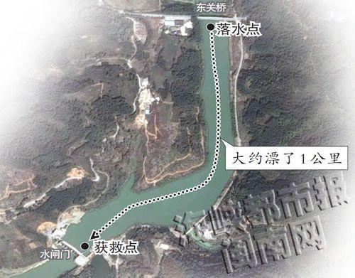 原本以为自己这下要完蛋了,可没想到的是,她在水面上漂了一个多小时,大约漂出1公里后,才被东美水库的水闸门给拦了下来。水库工作人员看见后,赶忙扔了一个救生圈下去,然后报警求助。