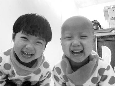 以前俩孩子长相几乎一样,而现在思敏因化疗面色惨白,头发也没有了。家属供图