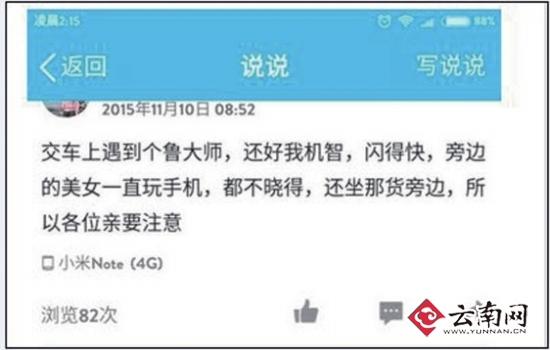 “就是他!我一眼就看出来了,他的发型和怪异的眼神。我一周遇到他3次,受不了了改坐地铁上班。”女网友发出的帖子引起了很多关注,跟帖中不少女性表示遇到过这名男子。网友A的家在关上某小区,工作地点在交三桥,在没有遇到这名男子前,A女士每天在自家楼下乘坐公交车到公司上班。但自去年11月份,连续一周遇上3次该男子后,无奈改乘地铁上班。“我从家走到日新路,乘坐地铁去上班,走一截也不怕,只要别再遇见他。”
