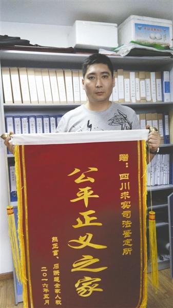 熊一霖向四川求实司法鉴定所送锦旗,感谢作为专家证人帮助自己的该所鉴定专家