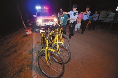 3名偷校园公租自行车的嫌疑人被控制。除署名外均据京华时报记者欧阳晓菲摄