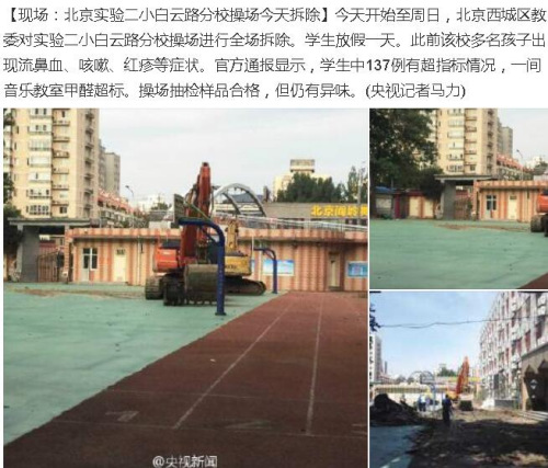 北京实验二小分校操场今拆除 此前现多名学生流鼻血