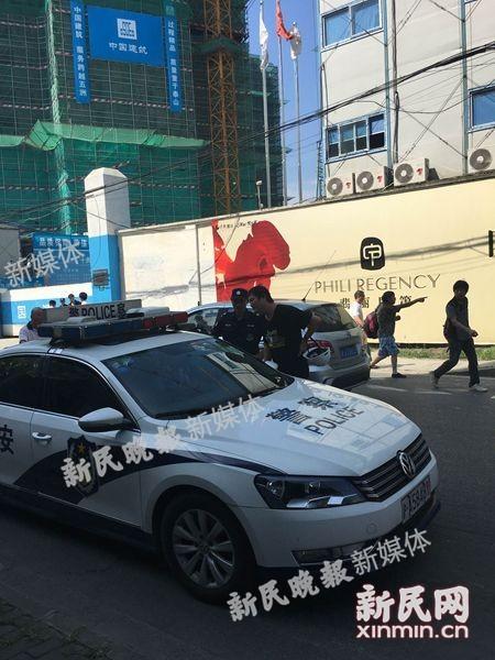 图说:事故现场有一辆警车。新民晚报新民网记者 刘玉萍 摄