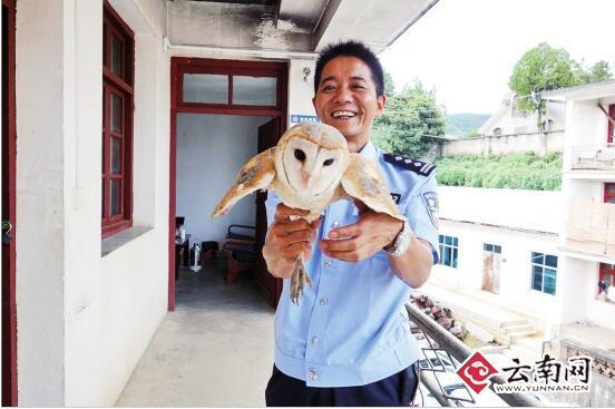 近日,热心市民打电话到保山昌宁县森林公安局:“我们在县城南小区工地上捡到一只猫头鹰。”民警到现场后发现是一只猴面鹰幼鸟,翅膀有轻微擦伤,随即将它带回进行消毒救助。19日,猴面鹰恢复了灵气,民警将它带至野外放归自然。