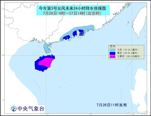 与此同时,海南、雷州半岛、广东南部等地将有大雨或暴雨,其中,海南岛中东部的部分地区将有大暴雨(100~200毫米)。