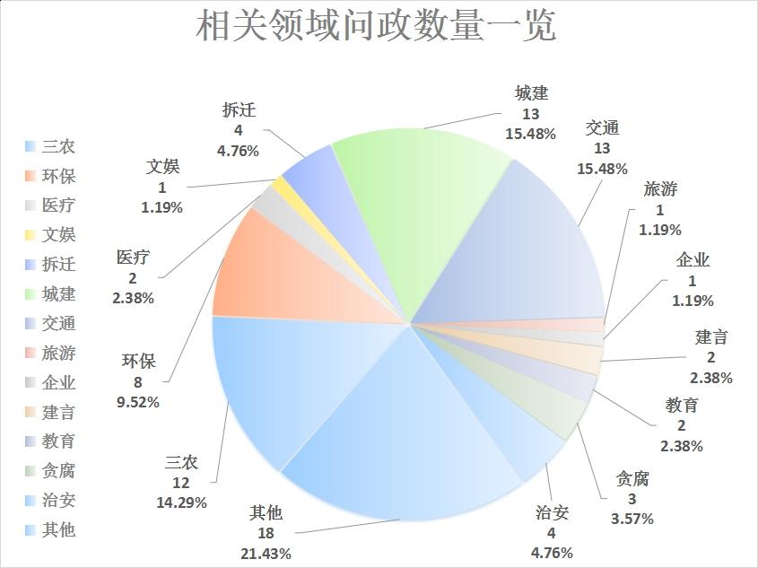 其他类问题排名第一,网友留言共计18条,占问政留言总数的21.43%;
