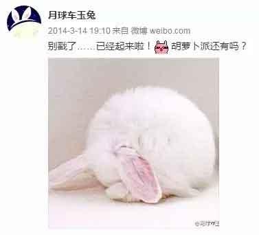 参与互动 今天要说的,是一个感人的故事……故事的主人公是一只脚踩轮子、会奔跑、会爬坡的机灵小兔子 ——玉兔号月球车。它是一只看过最多星星的兔子,它在宇宙中孤独斗争了972天,昨天它永远离开了我们。7月31日,它在微博上最后一次跟大家道晚安——