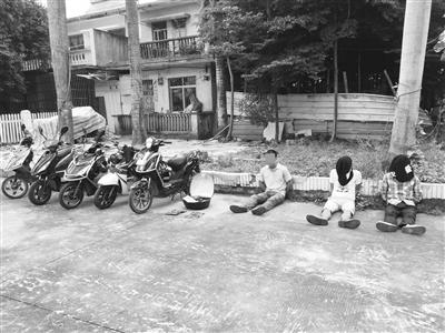 8月以来,海口市龙华区坡博西村、苍西村等地不少租户反映,他们晚上停放在一楼充电的电动车被盗。海口市公安局龙华分局飞龙大队六中队查看多起案件现场的监控录像,经过比对发现,数起案件系同一团伙所为。监控显示,该盗窃团伙分工明确,踩点、实施盗窃、望风由不同人员负责;盗窃人员作案手法娴熟,用自制的盗窃工具作案,不到一分钟偷一辆车,有时在同一地点一次盗窃3辆电动车,然后3人分别骑车离开现场。