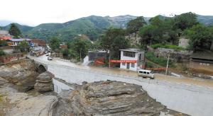 村中被洪水冲出几十米深“峡谷” 架起新桥(图)