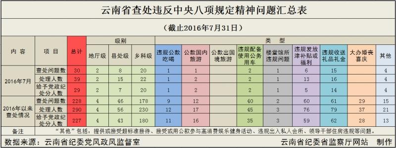 云南1-7月查处违反八项规定精神问题228起(图)