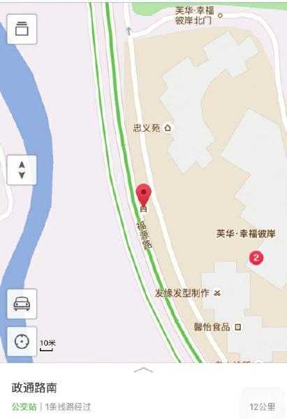 “小区门前这段路每一段都有不同的名字,住得久的用户基本不会搞错。只是公交车站名太名不副实了。”用居民张女士的话表达,即“小区南门门口是福源路,129路的公交车站却叫政通路南站。”记者在百度地图上查询“政通路南站”,显示该站点确实位于幸福彼岸小区南门外的福源路上,福源路上的辅路还是标注的政通路辅路。