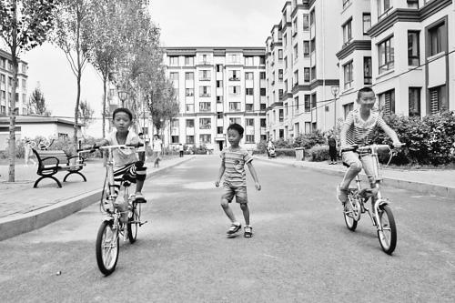 图为星级公交驾驶员宿舍区内孩子们在玩耍。
