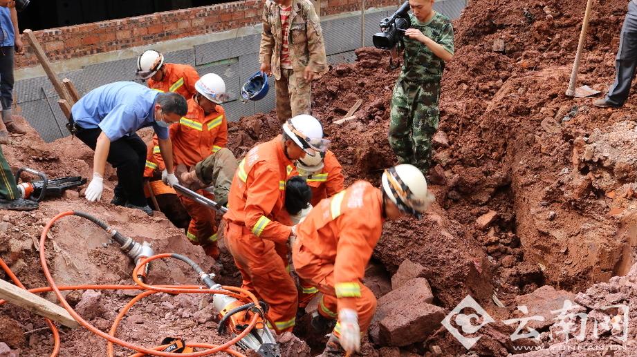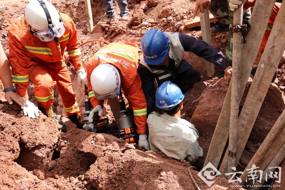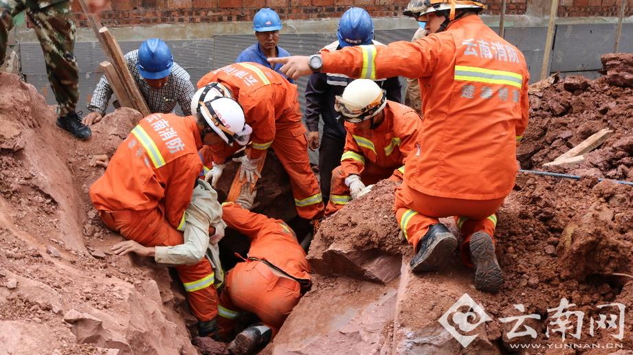 云南楚雄一工地塌方致1名工人被困 消防营救(图)