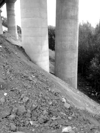 记者观察发现,铁路高架桥约有8层楼高,每座桥各有八根桥墩柱,残土是由桥东侧卸入,并不断推进扩展开来,将两座桥的桥墩柱掩埋近半,个别桥墩下堆积的残土高度,已达整个桥墩的一半,向四外扩张的残土还将桥下的数百株树木压歪掩埋。
