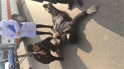 交警到达之前,民警又进行了分工,一位民警照料伤者,一位民警在现场对车辆与通行人员进行分流疏导,一位民警在周围市民的见证下,在伤者身上查找该男子的身份证件,帮助寻找其家人。