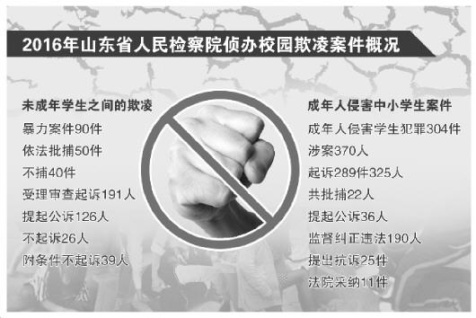 山东检方今年办理校园欺凌案90件 受理审查起诉191人