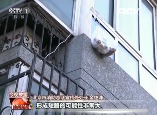 北京市消防局宣传处处长 金德洙:咱们可以很明显地看到这根电线是一根麻花线,没有任何的保护,一旦这根线因为超载,或者超负荷,形成短路的可能性非常大。这还有一根,基本上三到五步就能看到一个充电装置,自制的很不安全的充电装置。