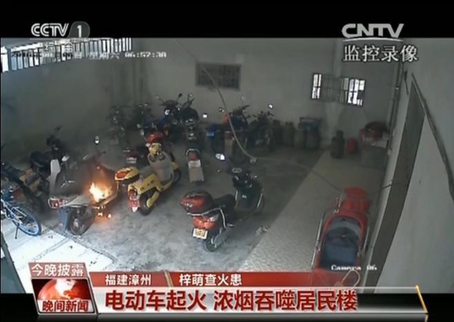 2016年8月6号早上7点左右,福建漳州一居民楼起火,大火将15人困在居民楼内。消防部门调查发现,火灾是由于停车房内的电动自行车引发的。事发时停车房的监控录像显示:早上6点52分,一辆白色电动自行车座位下方有黑烟冒出,这时路过的居民似乎觉察到了什么,他驻足向冒烟的地方望了望,如果这个时候及时处理,可能只需要一盆水,甚至一块抹布就可以将火情控制住,然而遗憾的是,他并没有采取任何措施就离开了。3分钟后,烟气越来越大,紧接着有火焰冒出,随后引燃整个电动自行车后座,不到四分钟,火势迅速向周边蔓延,很快就将整个停车房的车辆全部烧毁,电动自行车燃烧产生的大量有毒浓烟将整栋居民楼吞噬。所幸消防人员救援及时,才没有造成人员伤亡。