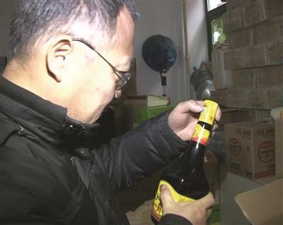 据了解,这家店以批发调味品为主,不过检查人员发现,这家店不但涉嫌超范围经营,更为严重的是店里的大部分产品包装上存在一定的问题。其中六箱某品牌酱油涉嫌假冒,在它的瓶口,执法人员发现了防伪标识是假的。“真的防伪标识,变换角度,颜色就会有变化,它这个换什么角度看颜色都没有变化。”