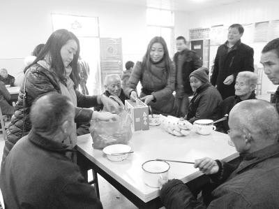 同学们带着礼物来看望福利院的老人们。记者张全录 通讯员陶火应 摄