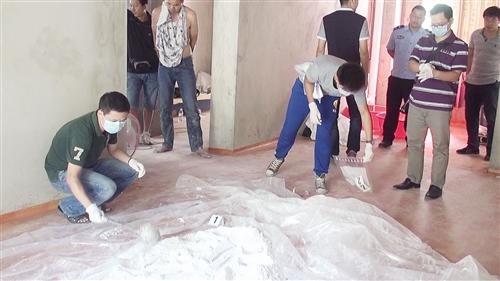 甘科伟(左一)在清理毒品现场