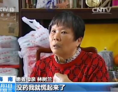 患者母亲 林树兰:我说能不能停一下,或者减少量,谁知道,我一减少一粒一天,结果就马上发作起来。