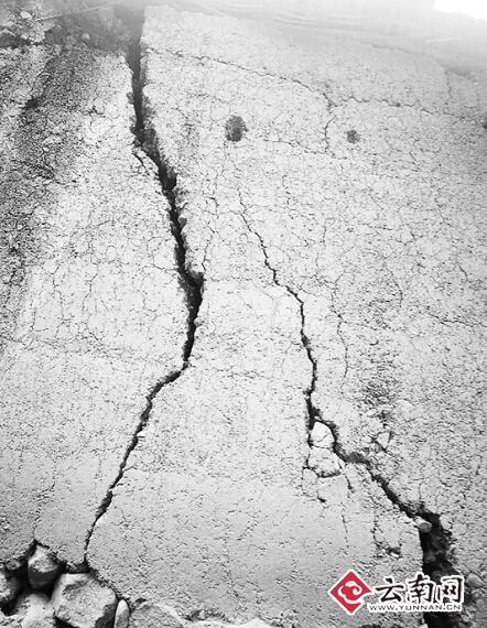 李美亮家的土坯房布满裂痕,“起初,裂缝只有手指那么宽,后来有的裂缝有拳头那么大。”李美亮说,2014年12月,当地政府要在村子里修一条简易公路,用来抢险救灾。她家房屋下是斜坡,修一条五六米宽的路,斜坡被挖成了一个陡坡,近乎垂直。施工时,斜坡下有石头,施工方就用破碎机。震碎石头的同时,也将斜坡上面的地基震松了,她的房屋墙壁就出现了裂缝。